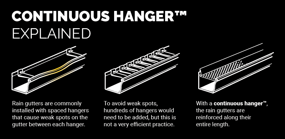 The second, more advanced option is a continuous hanger system integrated with a gutter guard. This design evenly distributes the weight along the entire length of the gutter, significantly increasing its load capacity. Additionally, the gutter guard system reduces maintenance by preventing debris buildup, eliminating the need for frequent cleaning.
